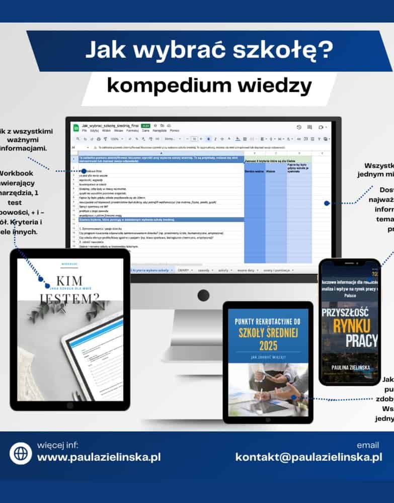Obejmuje 3 pierwsze kroki – poznanie siebie, analiza możliwości i określenie kluczowych kryteriów wyboru szkoły.